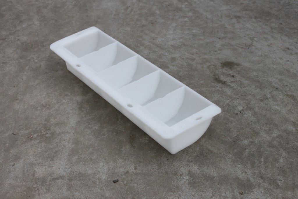路側(cè)石塑料模具主體水泥澆筑空間部分尺寸也是高低不一,所生產(chǎn)制成的水泥路側(cè)石成品結(jié)構(gòu)為一個長方體于梯形的切面合體。而平聯(lián)體堵頭模具則用來生產(chǎn)簡單的水泥堵頭。