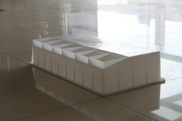 一款類(lèi)似梯形結(jié)構(gòu)的公路側(cè)石模具,采用具備高度韌性的聚丙烯塑料為原料,經(jīng)大型專(zhuān)業(yè)注塑設(shè)備加工完成。結(jié)構(gòu)上同樣采用其他類(lèi)似路側(cè)石模具的設(shè)計(jì)方案,在塑料模具底部及四周布滿加強(qiáng)筋,合理的提升此公路側(cè)石模具的耐用性。