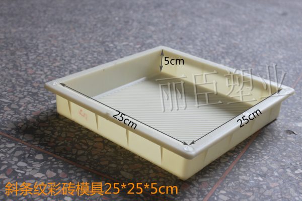 在這款步道磚塑料模盒在外觀設(shè)計(jì)上,通過改變形狀,花樣等,讓塑料彩磚模具制品在后期澆筑過程中能更好的使用。條紋的設(shè)計(jì)上改變以往橫向條紋的使用,以斜條紋樣式為彩磚模盒內(nèi)部的主要形狀,斜條紋的設(shè)計(jì)可以增大彩磚與行人與地面之間的接觸面積,即便是在下雨天出行時(shí)也不會(huì)打滑等現(xiàn)象,且還能美觀使用場所的環(huán)境,常用于城市、公園、社區(qū)等步行道上。