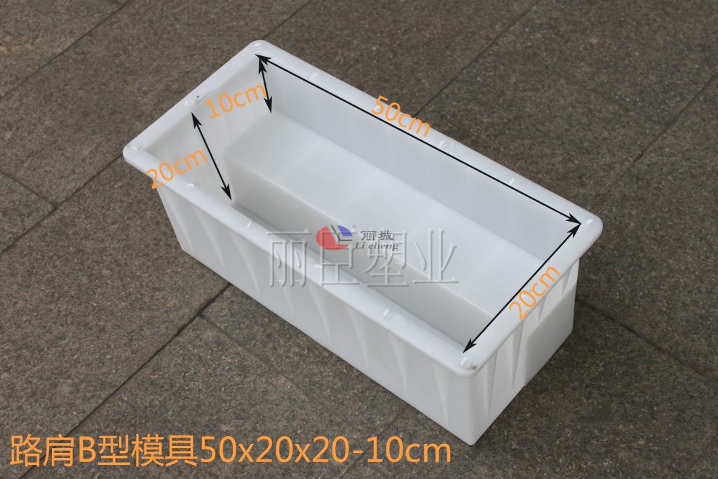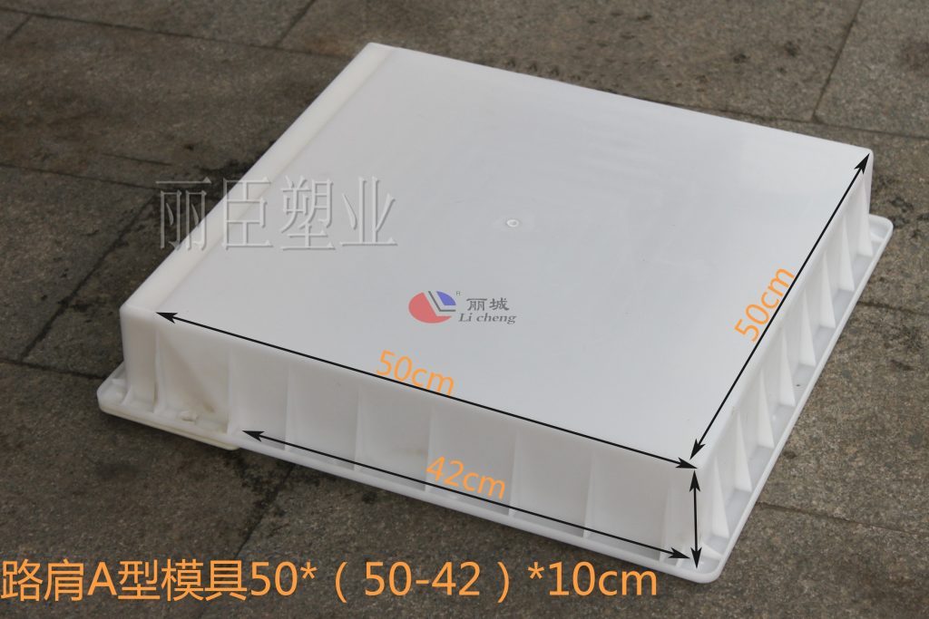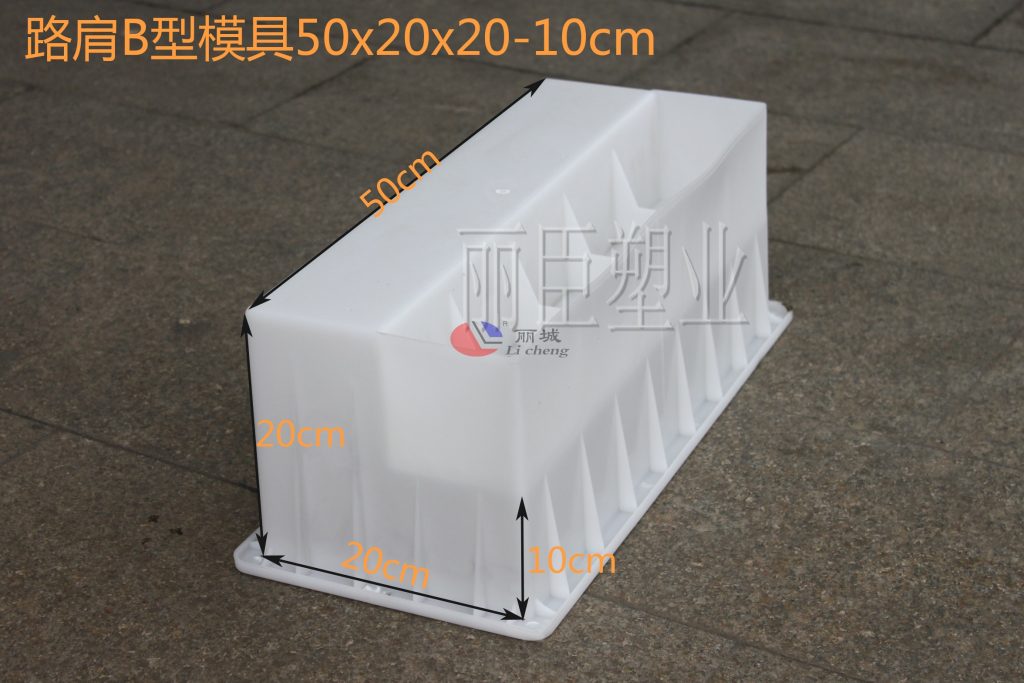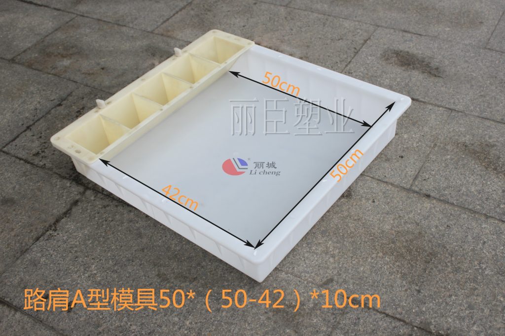 這款路肩石是由兩款路肩石塑料模具拼裝而成,以一個梯形和缺角正方形拼接而成,使用場地較為頻繁,較為常見的便是使用在高速邊坡以及市政公路邊坡周圍。
