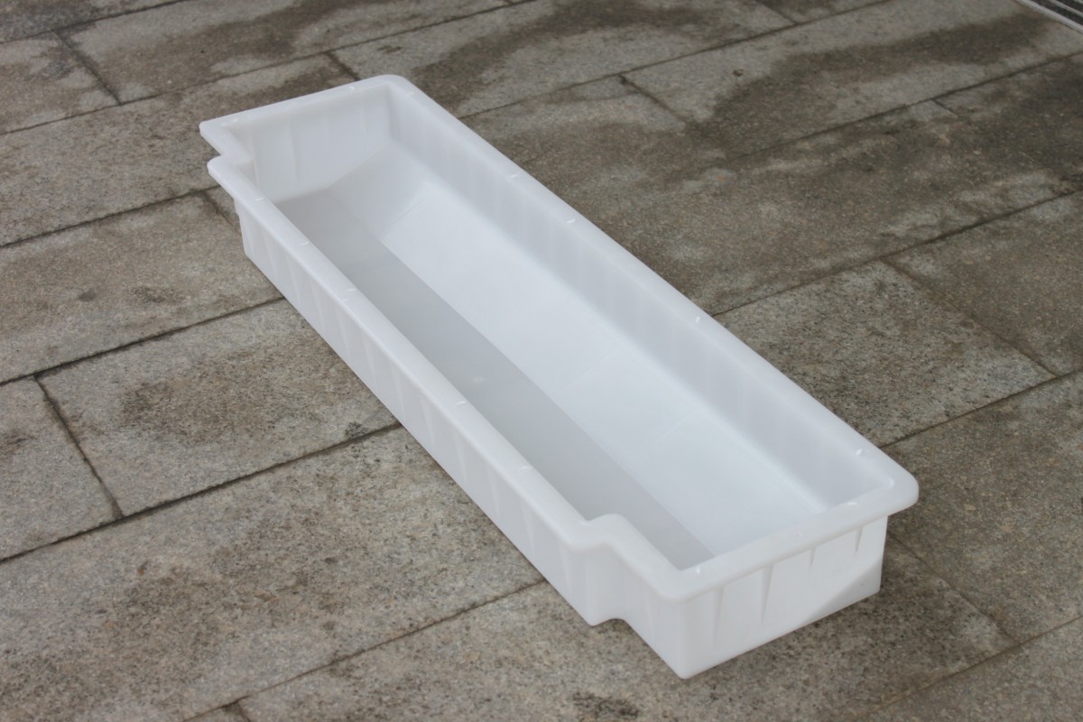 路側(cè)石模具使用純PP聚丙烯材料,以注塑工藝一次成型,主要特色為路側(cè)石外形為缺角及有一定坡度。成品整體工藝表面光滑,內(nèi)部結(jié)構(gòu)合理,水泥構(gòu)件脫模方面,在使用次數(shù)上更為耐用。主要使用在高鐵高速及市政公路道路側(cè)石的預(yù)制。