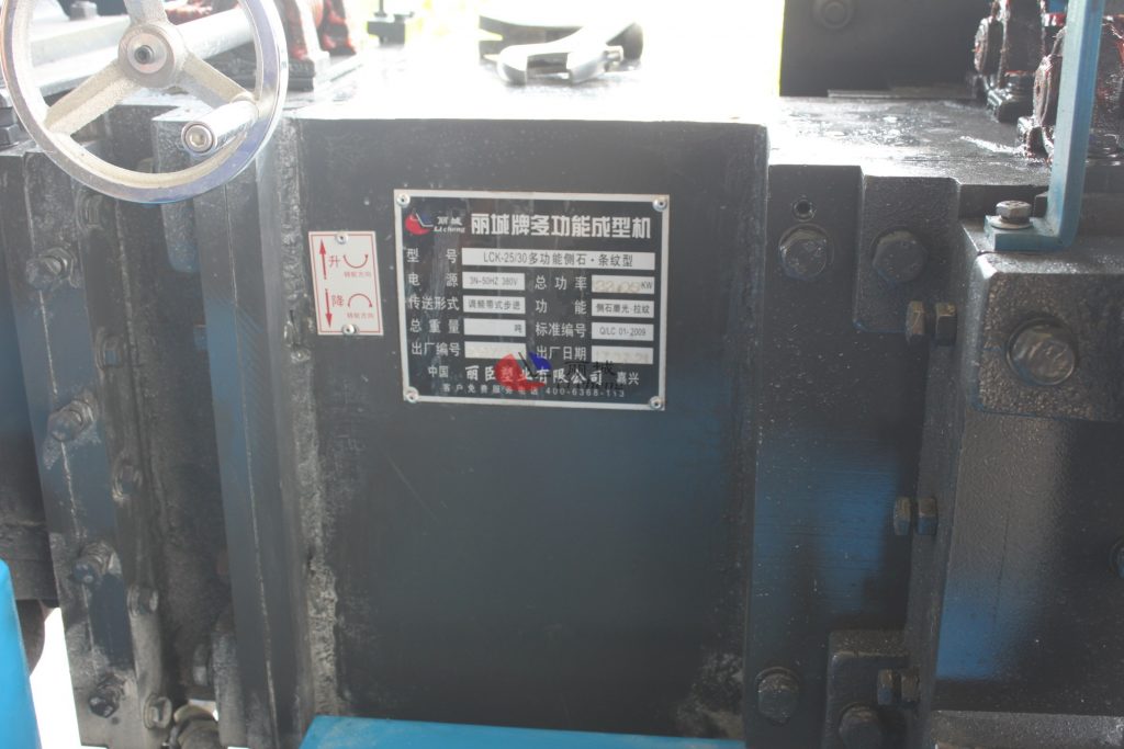 這款LCK-25/30多功能側(cè)石二工位條紋成型機,其主要功能是對澆筑成型的水泥模具進行二次加工成型,其機器總功率為22.05KW,其傳送形式為調(diào)頻帶式步進,電源使用的標(biāo)準(zhǔn)為3N-50HZ 380V。