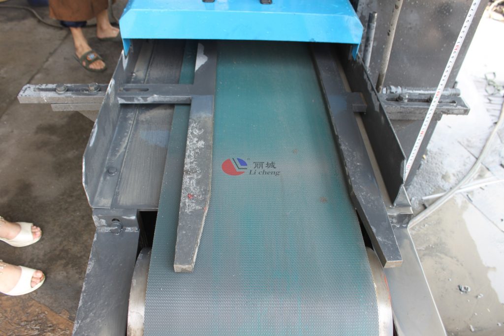 制作這臺多功能成型機的技術(shù)員在對這臺機器出廠前進行了最后一步的調(diào)試,將澆筑成型的水泥磚放置輸送帶上,成型機入口處與出口處都有配置供水系統(tǒng),防止在制作過程中塵土飛揚,能對水泥制品打磨過程中其表面更為整潔統(tǒng)一。經(jīng)過平磨系統(tǒng)對水泥模具澆筑成型的水泥制品進行磨形,后進入第二系統(tǒng)對水泥磚塊制品就進行拉條紋,這款多功能側(cè)石二工位條紋成型機打磨成型的條紋彩磚的外觀以34條紋為主。打磨成型后在有輸送帶將水泥磚運輸出來。其使用過程中為防止施工過程中的安全事故的發(fā)生,通過使用電控箱的方式來對機器進行急??刂?。