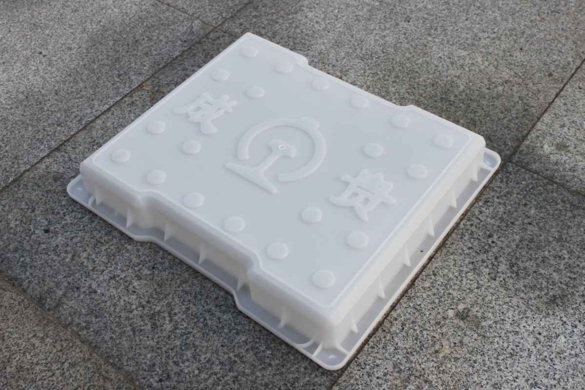 鐵路蓋板模具中圓點(diǎn)設(shè)計(jì)可以有效的起到步行防滑作用,鐵路圖標(biāo)及“成貴”字樣標(biāo)示此款產(chǎn)品為中國鐵路成貴高鐵線專用溝蓋板塑料模具。